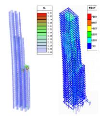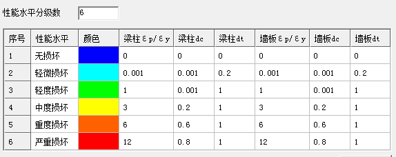 构件性能主要包括结构各种构件混凝土损伤情况、钢筋和钢材塑性应变情况以及特殊构件变形情况等。 以此判断结构是否满足结构性能设计要求。构件的损坏主要以混凝土的受压、受拉损伤因子及钢材(钢筋)的塑性应变程度作为评定标准,并与《高规》表3.11.2中构件的损坏程度对应。