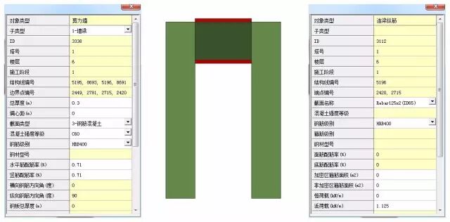 墙梁:墙梁一般用于模拟剪力墙连梁以及转换梁等截面跨高比较小的梁构件,其组成与剪力墙类似采用二维分层壳单元和一维连梁纵筋两部分组合模拟,墙梁低筋和面筋等面积转换为箱型截面进行模型。