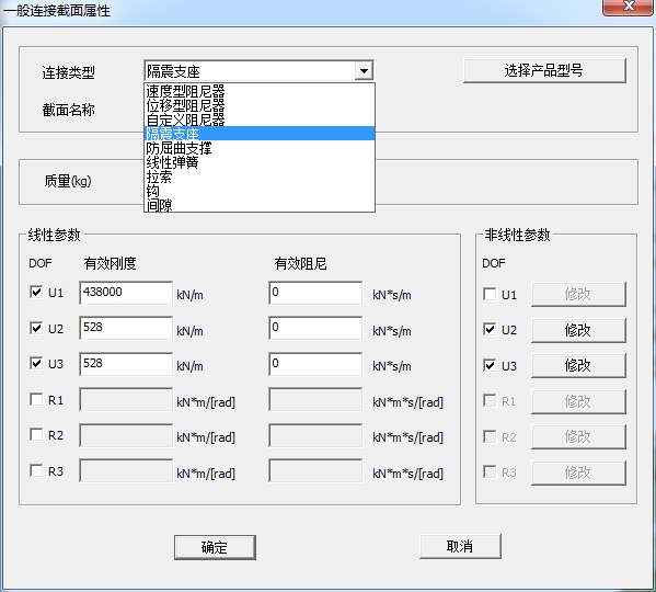 一般连接:对于较为复杂的连接构件,例如阻尼器、隔震支座、索等,SAUSAGE也提供了各种不同的连接构件供各种工程使用,对于各种连接构件的物理属性参见《Sausage用户手册》9.4节介绍(打开SAUSAGE主界面按F1)。